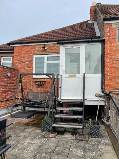 Outside steps to front door so not for everybody. Lounge, modern fitted kitchen, modern fitted bathroom with shower. Exceptionally large double bedroom with built in wardrobes and area for an office or further storage.